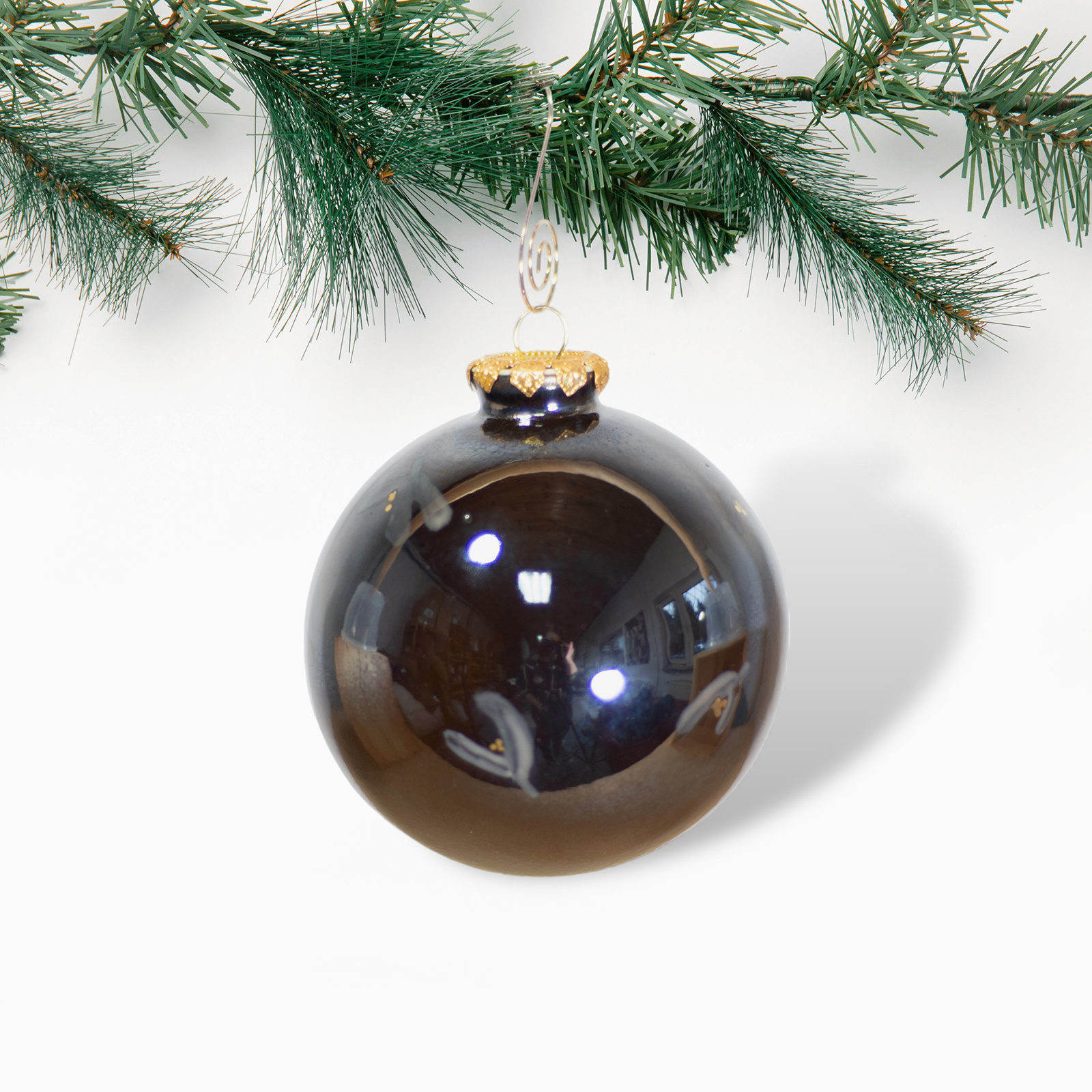 - Elegancka bombka choinkowa o sporych wymiarach. Odlana z białej masy lejnej oraz dekorowana błyszczącym szkliwem w odcieniach miedzi. Po poszkliwieniu malowana ręcznie farbami naszkliwnymi oraz 10% złotem.