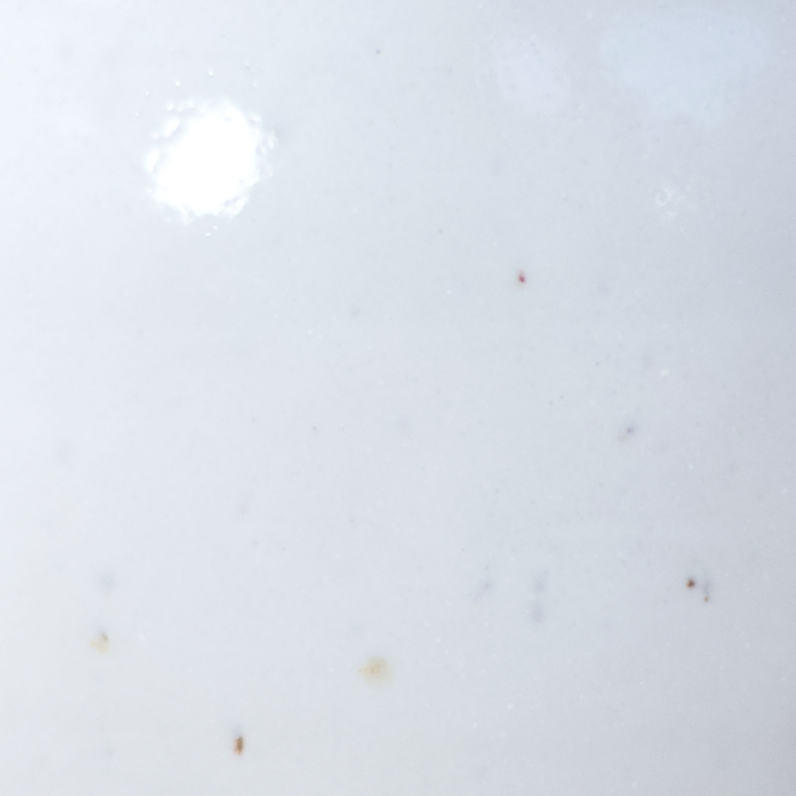 Wykonana ręcznie na kole garncarskim. Masa w kolorze kremowym w brązowe cętki. W całości pokryta białym, błyszczącym szkliwem.