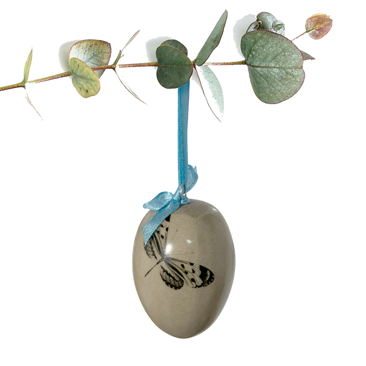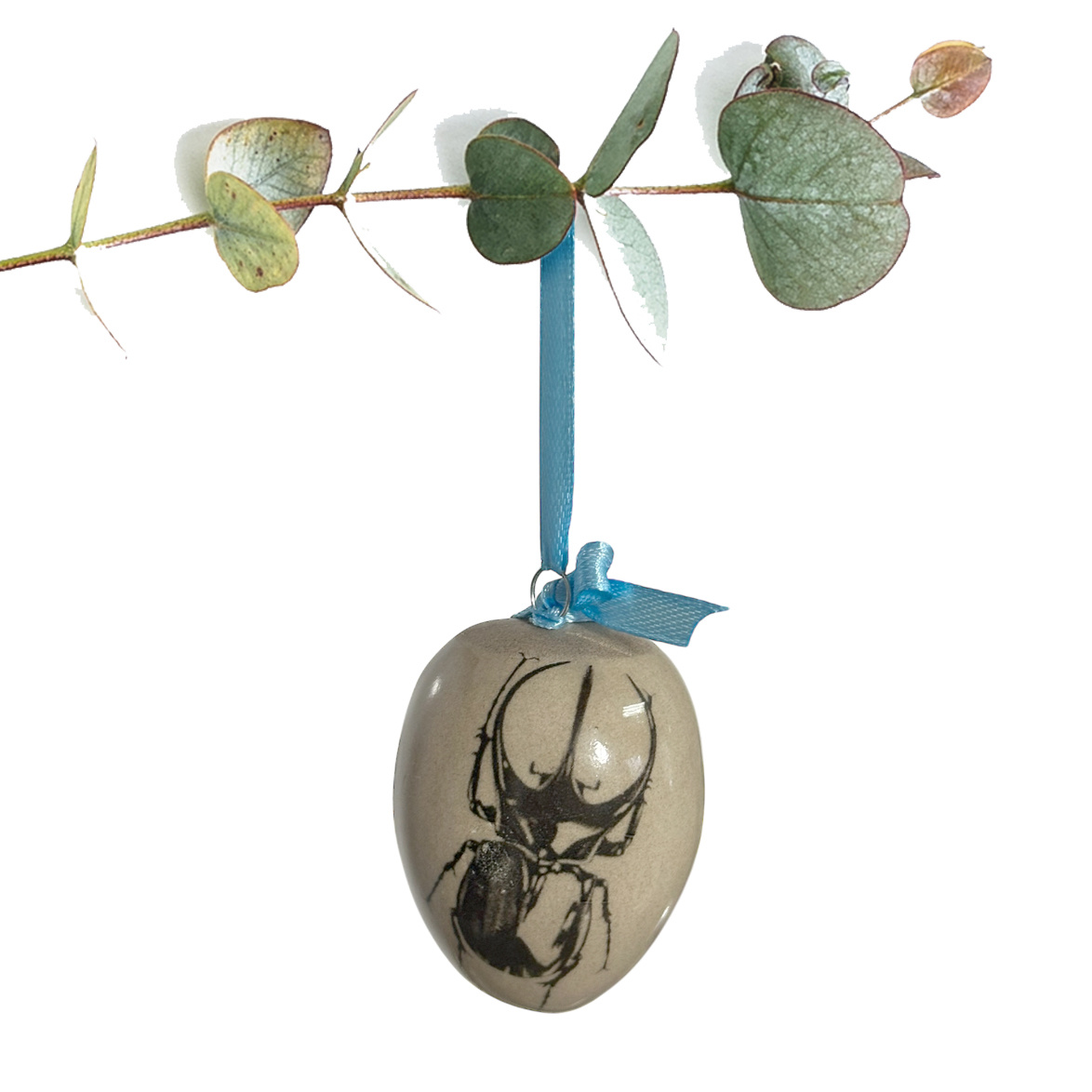 Jajko wielkanocne z błękitną wstążeczką. Żuk i ćma