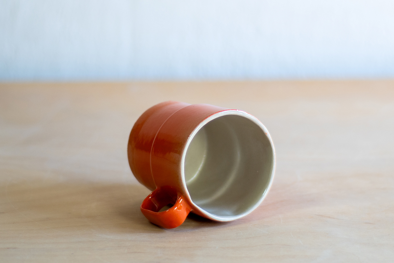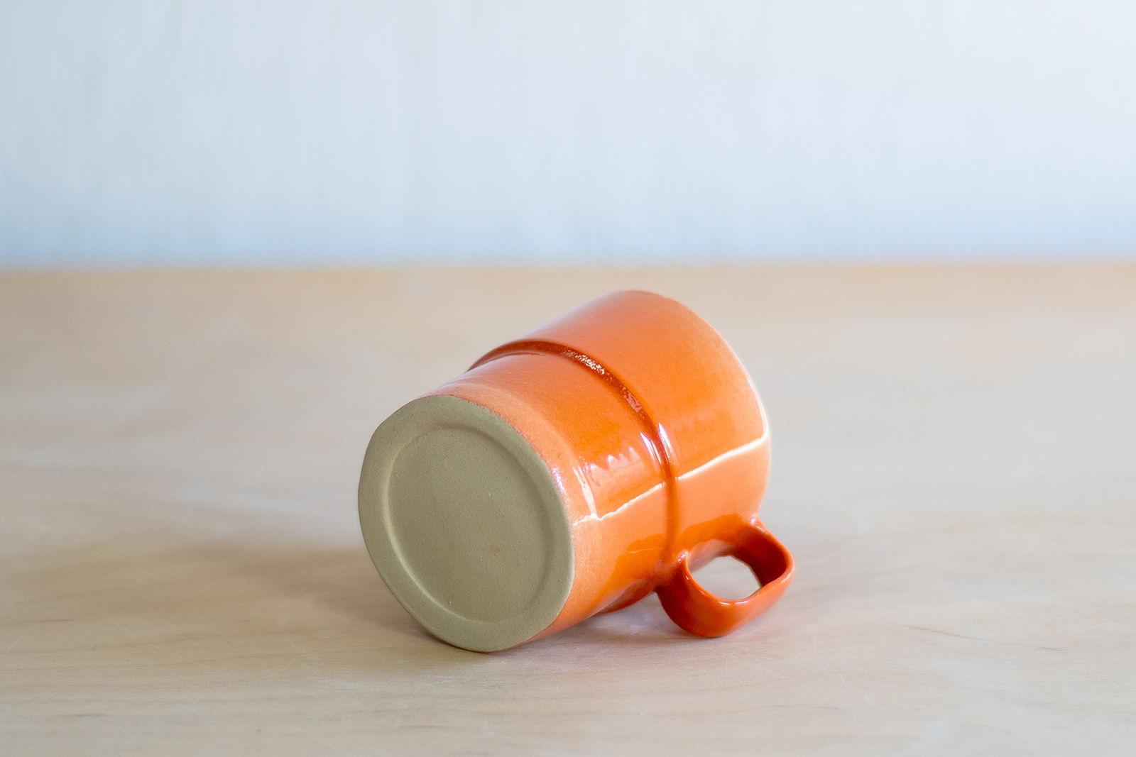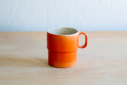 - Kubeczek do espresso o pojemności 150 ml. Wykonany ręcznie z masy lejnej na bazie autorskiej formy gipsowej. Masa w kolorze złamanej bieli, pokryta pomarańczową angobą oraz błyszczącym szkliwem.