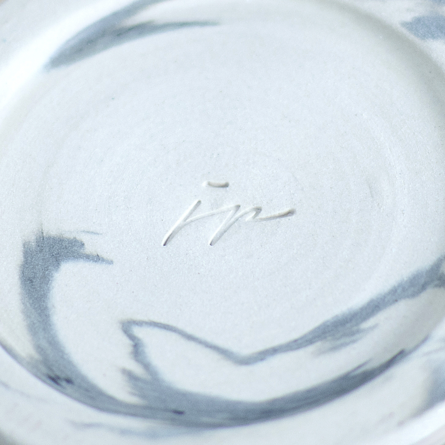 Wykonany ręcznie na kole garncarskim. Masa w kolorze białym z dodatkiem czarnej masy, tworzącej efektowne przejścia tonalne. Szkliwiony błyszczącym, transparentnym szkliwem. Stemplowany logo autorki.
