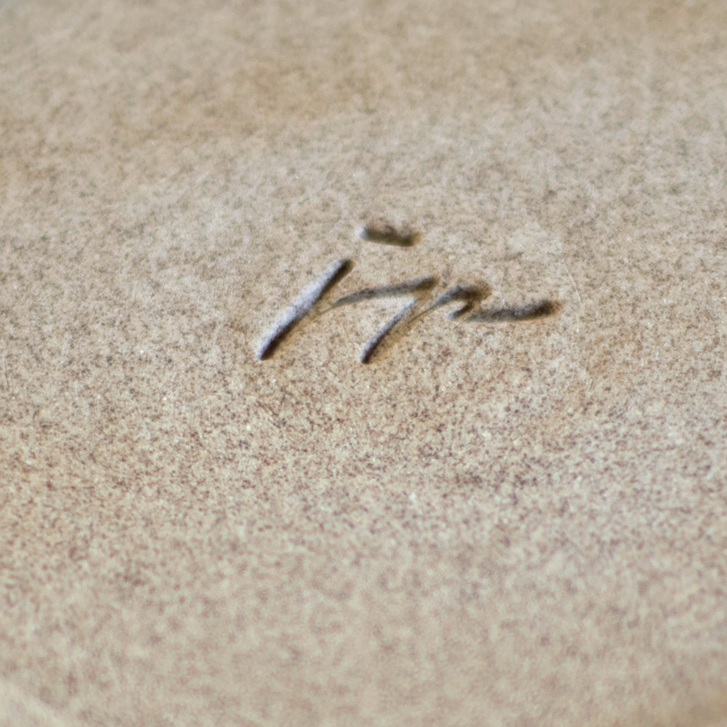 Wykonany ręcznie na kole garncarskim. Masa w kolorze kremowym. Dekorowany ręcznie szkliwem w kolorze białym, z wybranymi elementami bez szkliwa. Stemplowany logo autorki.