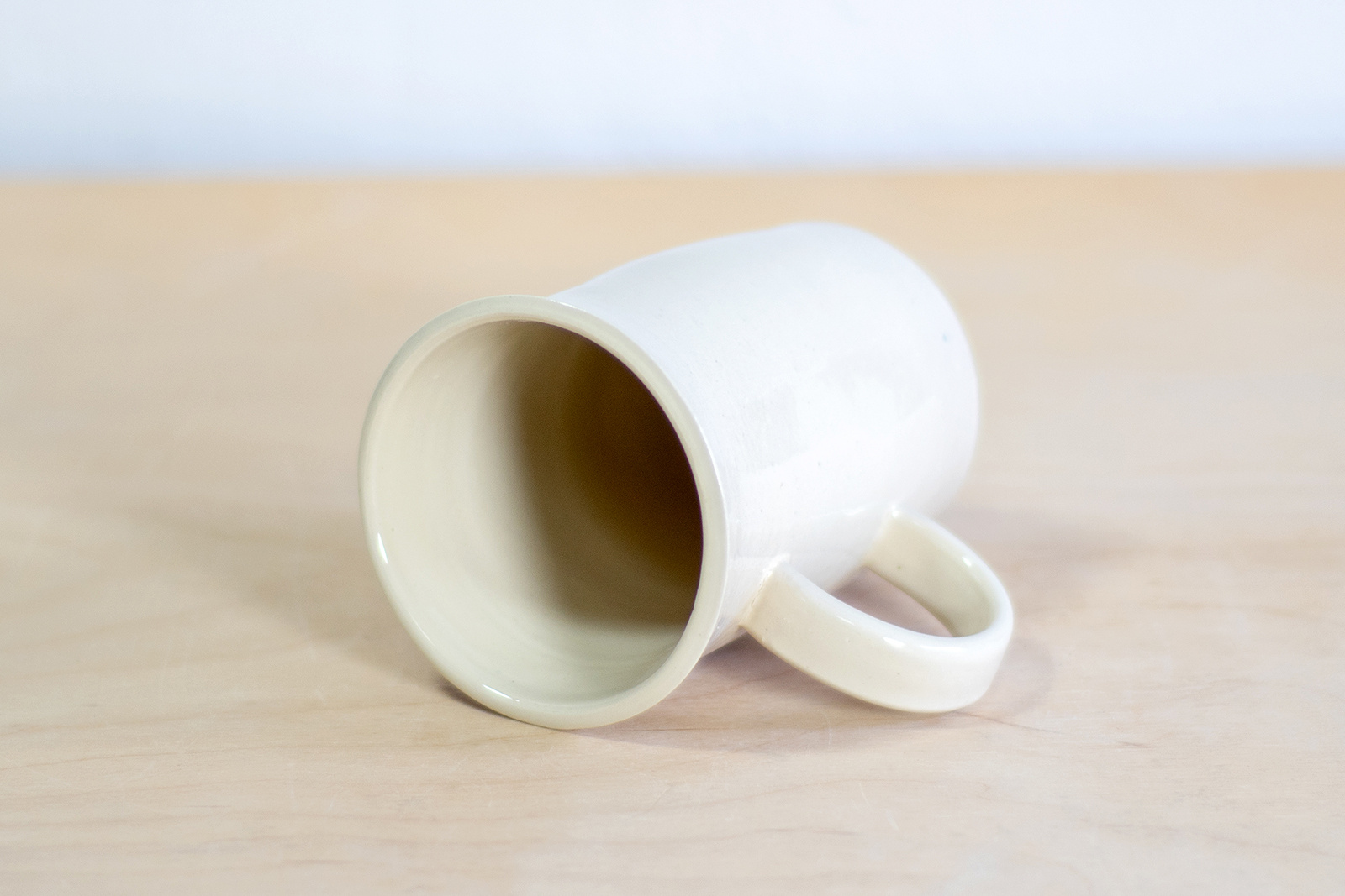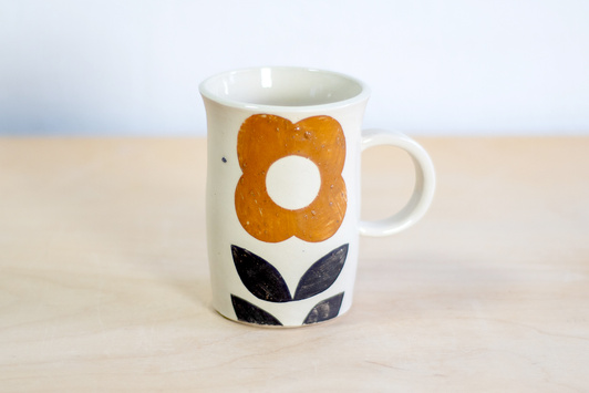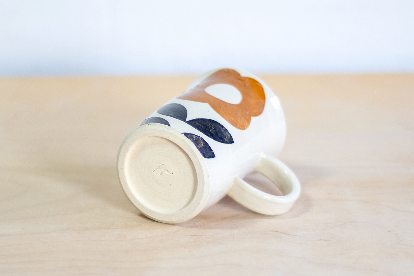 Kubek na kawę. Biały z kwiatem w kolorze ochry