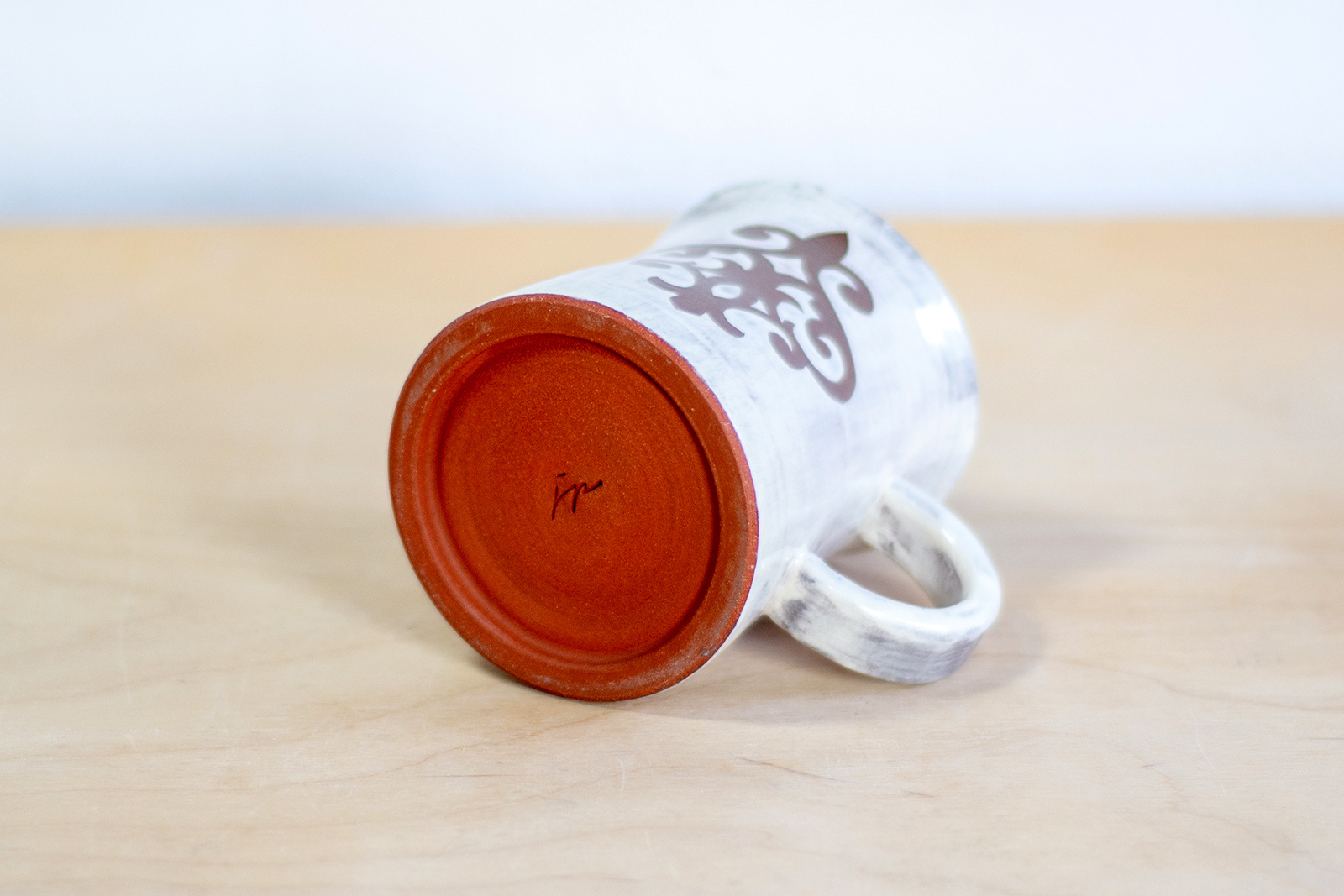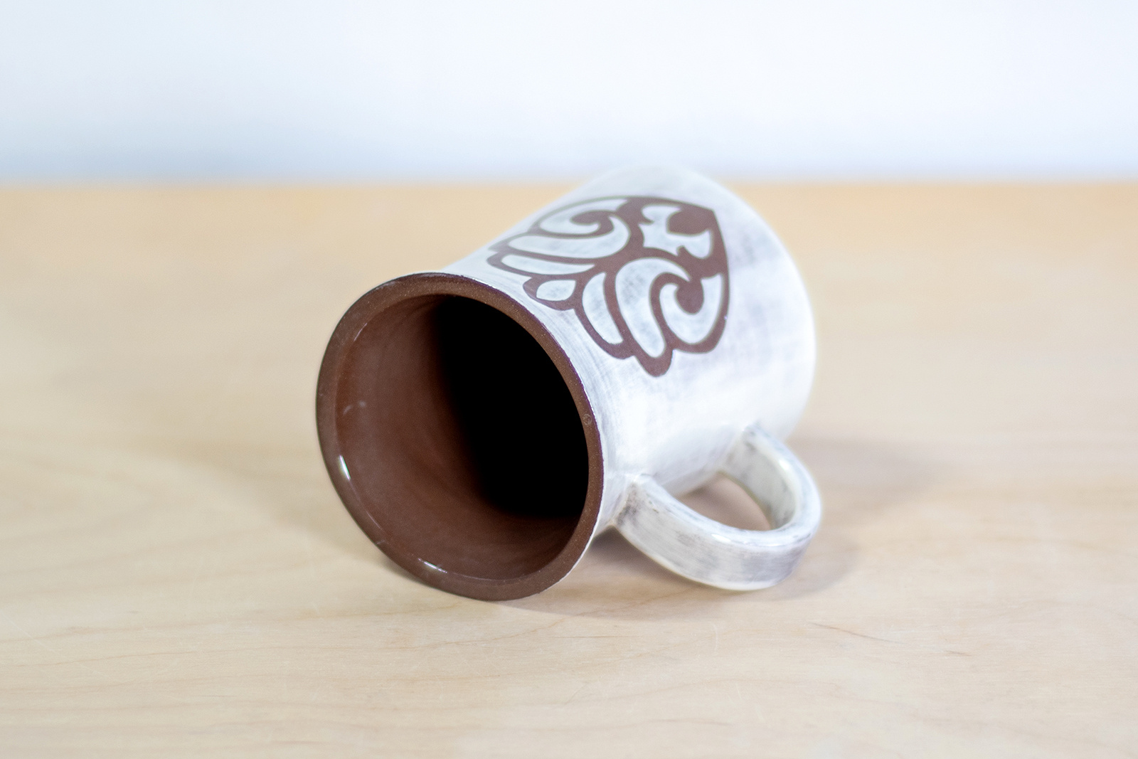 Kubek na kawę. Brązowo-Biały z ozdobnym dekorem, wykonany ręcznie