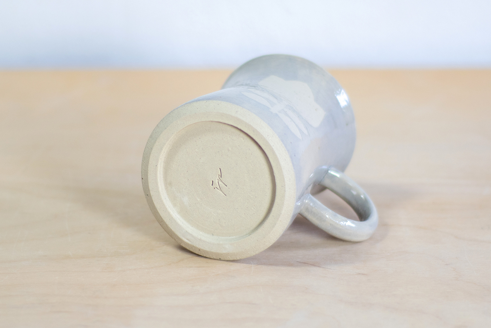 - Kubek ceramiczny o pojemności 200 ml. Wykonany ręcznie na kole garncarskim. Masa w kolorze białym, dekorowana wycinanką z ozdobnym dekorem oraz szarą agobą. Szkliwiony błyszczącym, transparentnym szkliwem.