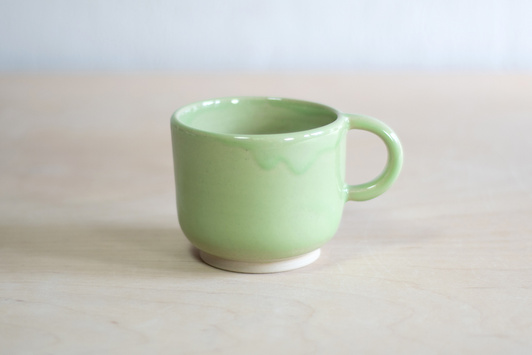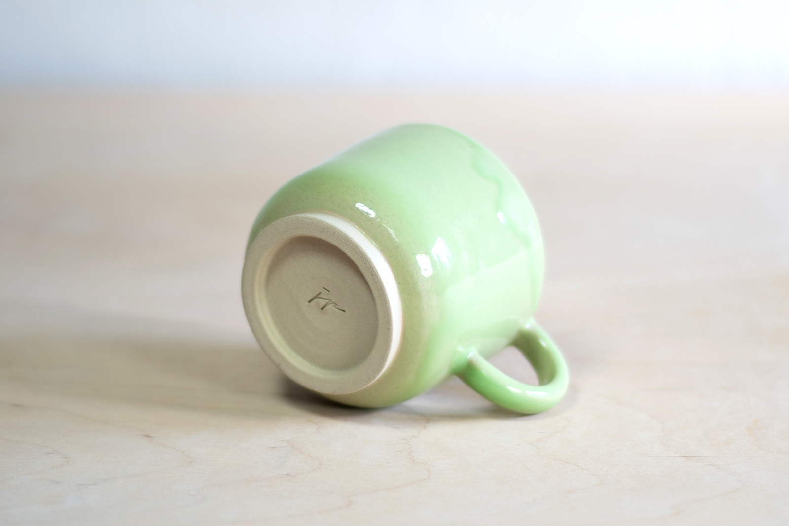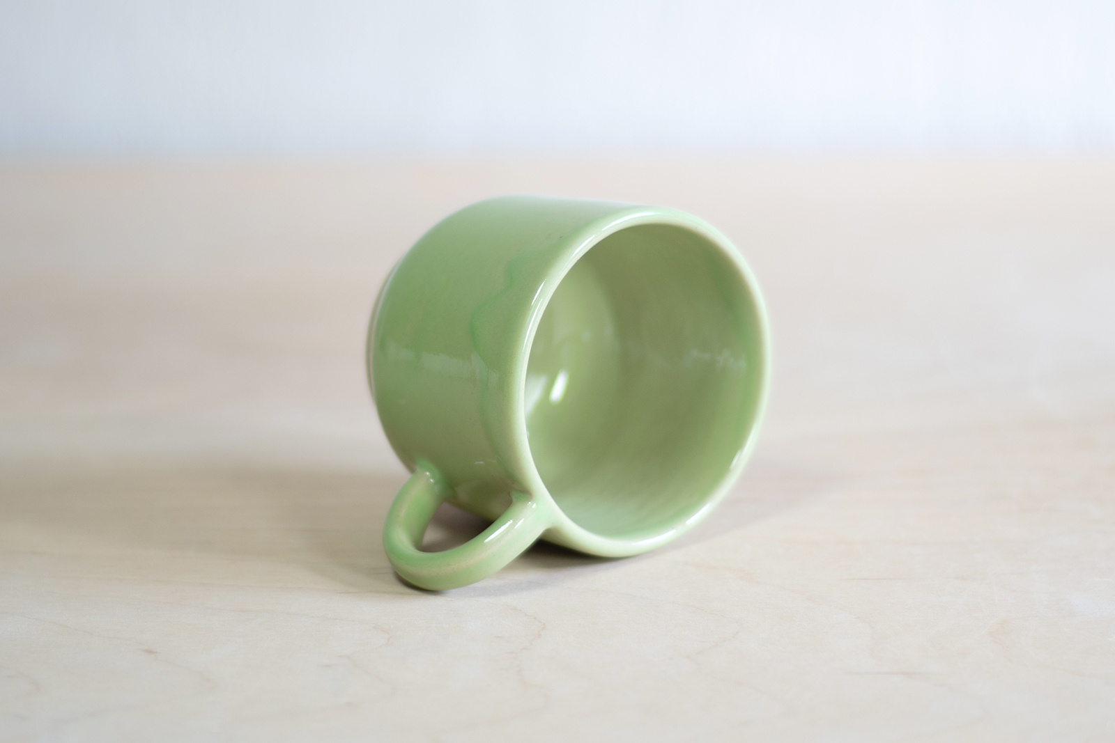 - Kubek ceramiczny o pojemności 200 ml. Wykonany ręcznie na kole garncarskim. Masa w kolorze kremowym. Pokryty błyszczącym szkliwem w kolorze kanarkowym.