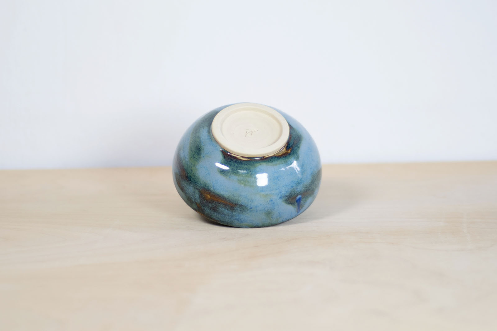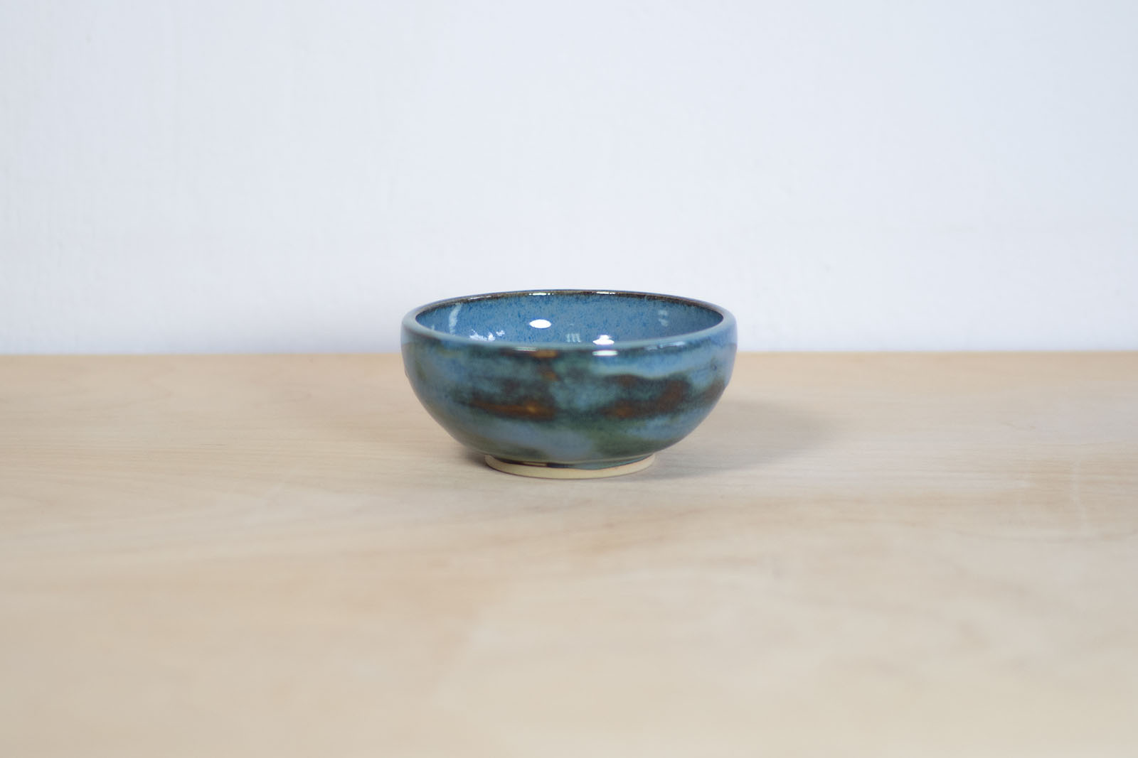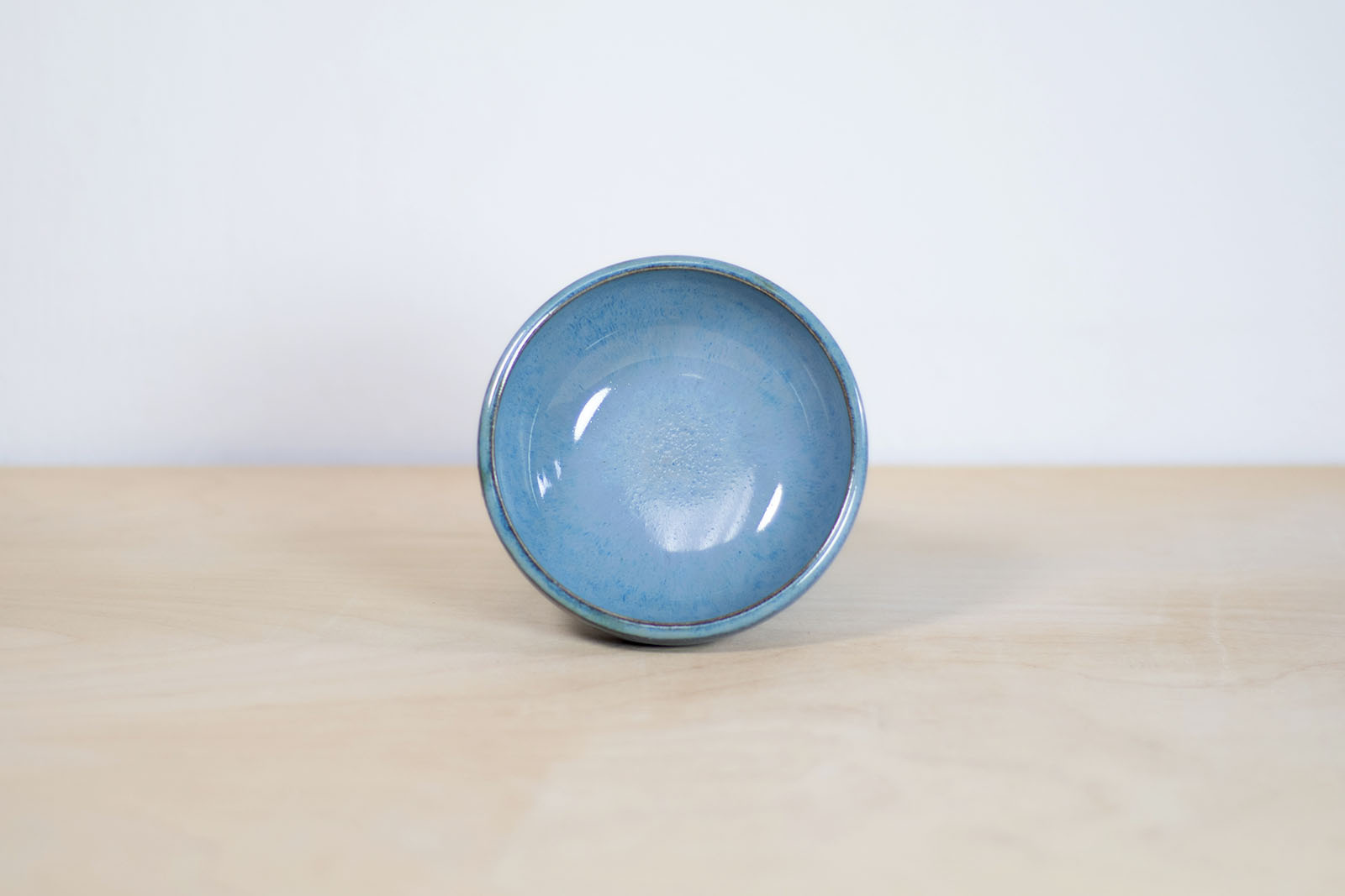 • Miseczka o pojemności 200 ml. Wykonana ręcznie na kole garncarskim z gliny w kolorze kremowym. Szkliwiona z obu stron błyszczącym, błękitnym szkliwem z przebarwieniami. Można stosować jako miseczkę do muesli lub na małe przekąski.