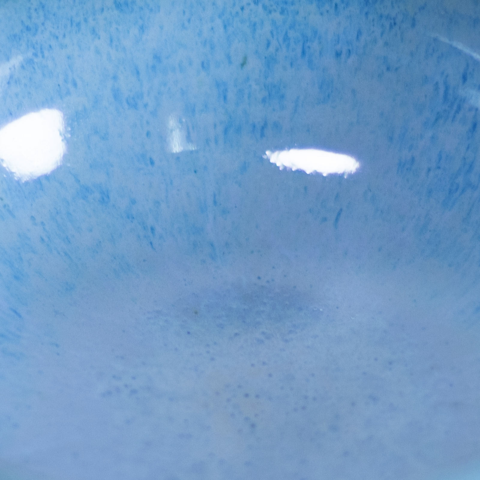 Wytoczona na kole garncarskim. Wykonana z gliny w kolorze kremowym. Sygnowana stemplem z logo autorki. Stopka wycięta ręcznie. Szkliwiona w całości błyszczącym, błękitnym szkliwem z eleganckimi przebarwieniami.