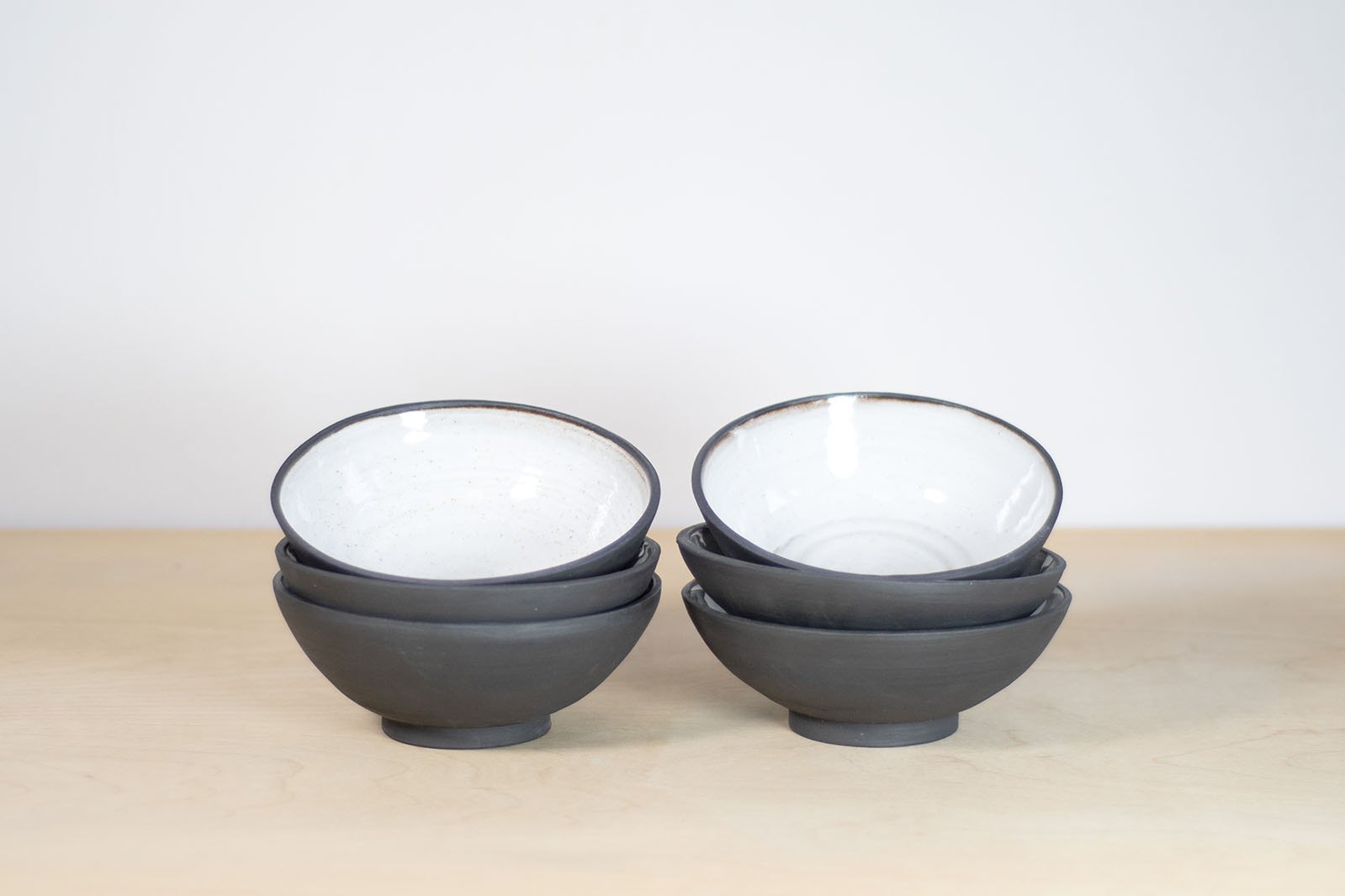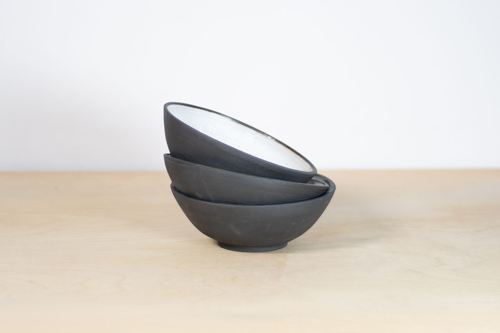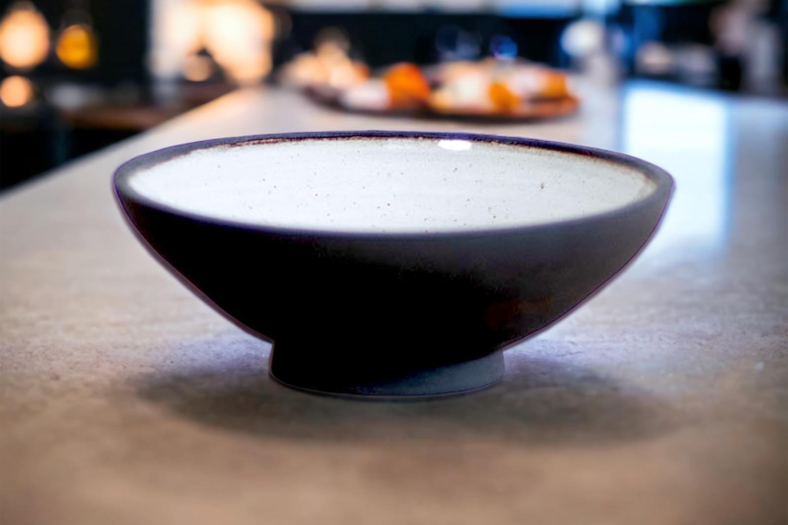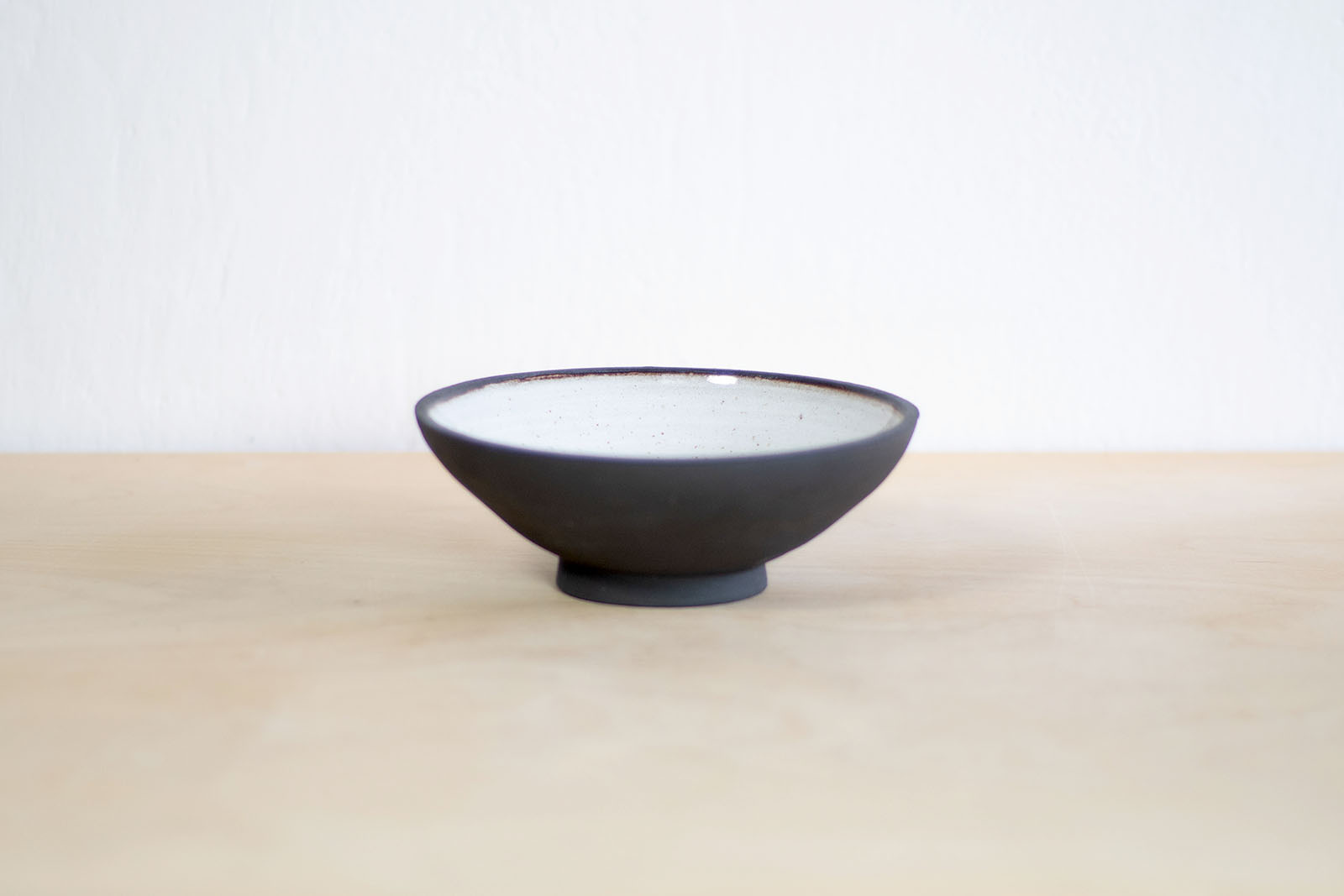 • Miseczka o pojemności 450 ml. Wykonana ręcznie na kole garncarskim z gliny w kolorze czarnym. Wnętrze pokryte białym, błyszczącym szkliwem. Można stosować jako miseczkę do muesli, ale równie dobra na zupę.