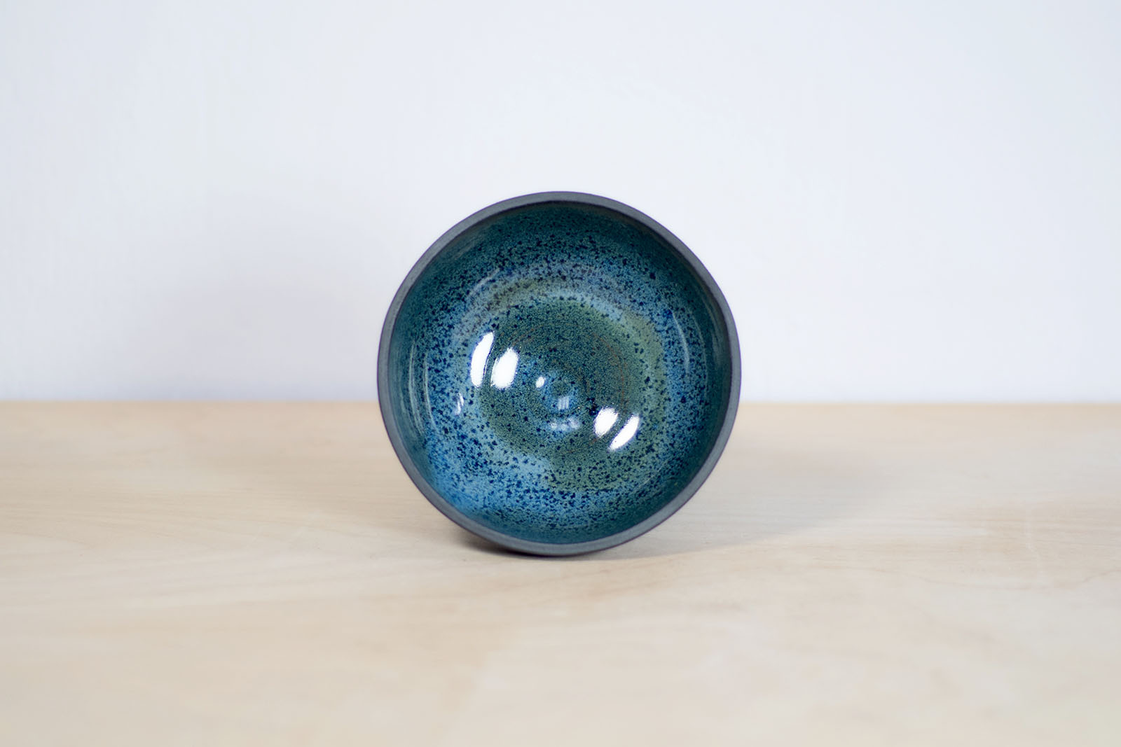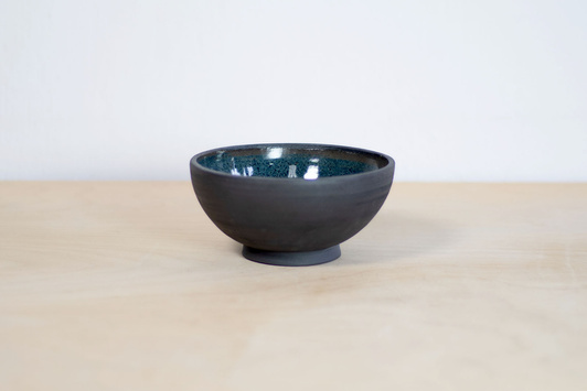 - Miseczka o pojemności 300 ml. Wykonana ręcznie na kole garncarskim z gliny w kolorze czarnym. Wnętrze pokryte błyszczącym szkliwem w kolorze niebiesko-turkusowym. Można stosować jako miseczkę do muesli lub małą zupę.