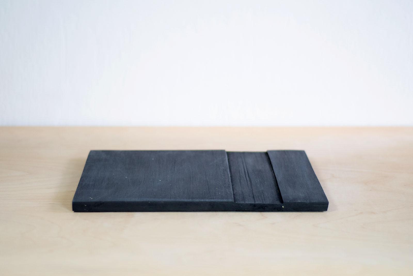 Wykonana ręcznie z gliny w kolorze czarnym. Faktura na powierzchni wykonana również ręcznie, poprzez szlifowanie podsuszonej formy. Nadaje się jako podstawka do karafki oraz kubeczków lub kubeczków w różnych barwach. Podklejona gumowymi nóżkami.
