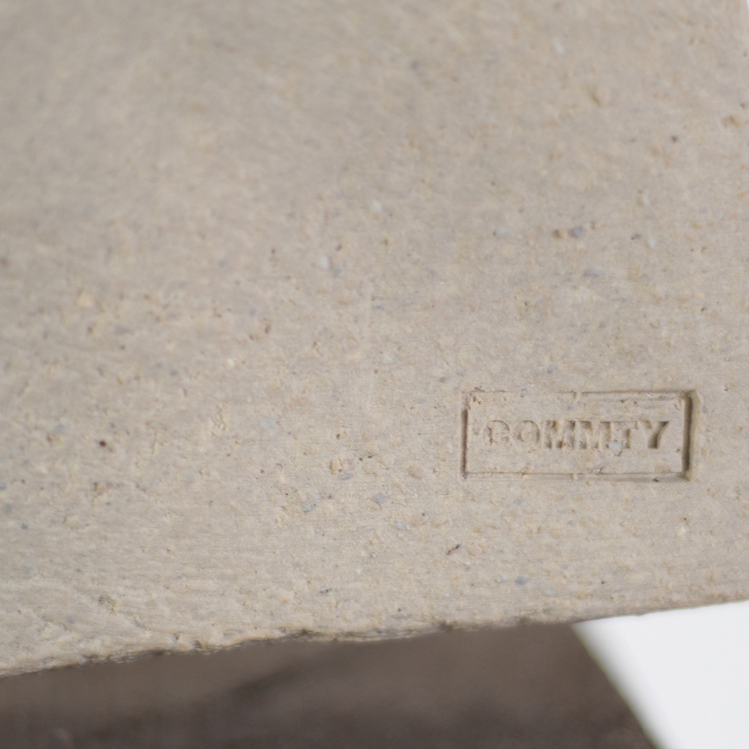 • Rzeźba ceramiczna o znacznych wymiarach, wykonana z organicznych brył z masy ceramicznej o wyraźnie zaznaczonej fakturze. Podstawa wykonana z dębowego drewna, bejcowanego na orzechowy kolor.