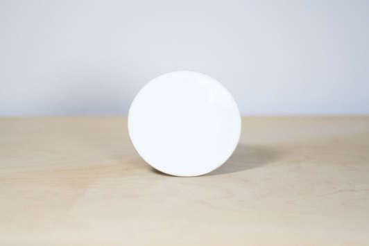 - Talerzyk do małej filiżanki lub kubeczka 150 ml. Wykonany ręcznie na kole garncarskim. Masa w kolorze kremowym w cętki. W całości pokryty białym, błyszczącym szkliwem.