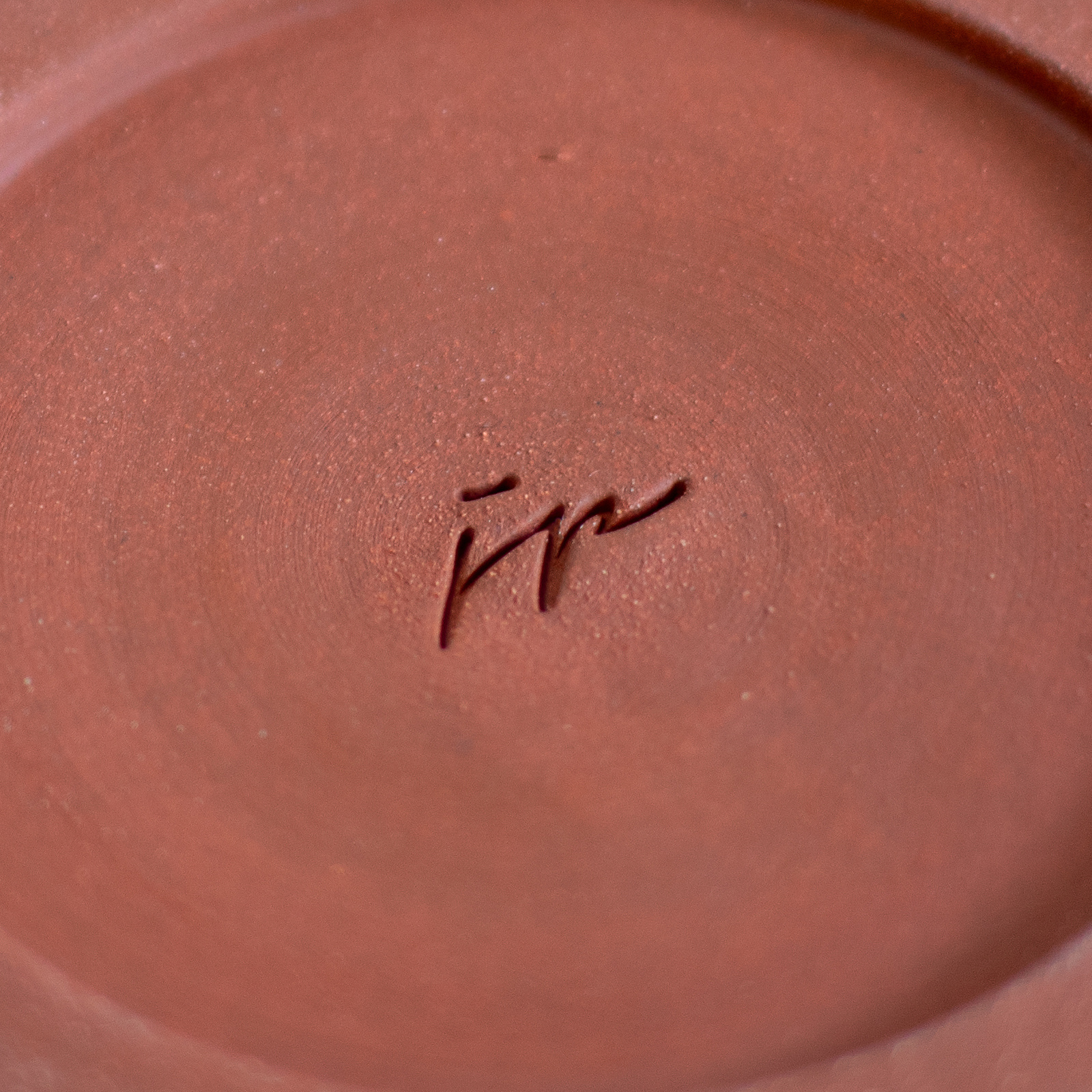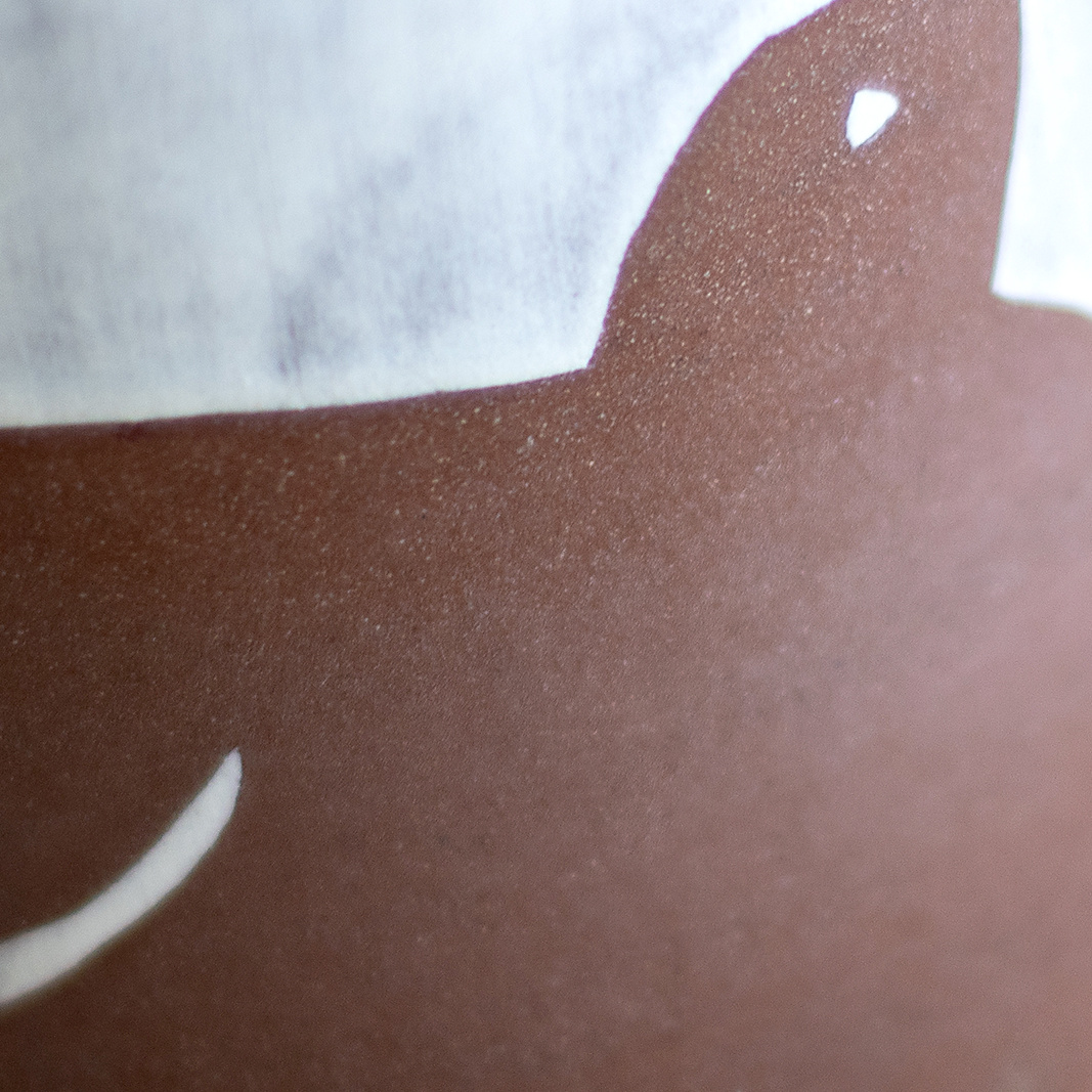 W całości wykonany na kole garncarskim z gliny w kolorze brązowym. Dekorowany ręcznie wycinanką i białą angobą. Całość pokryta błyszczącym transparentnym szkliwem. Stemplowany logo autorki.