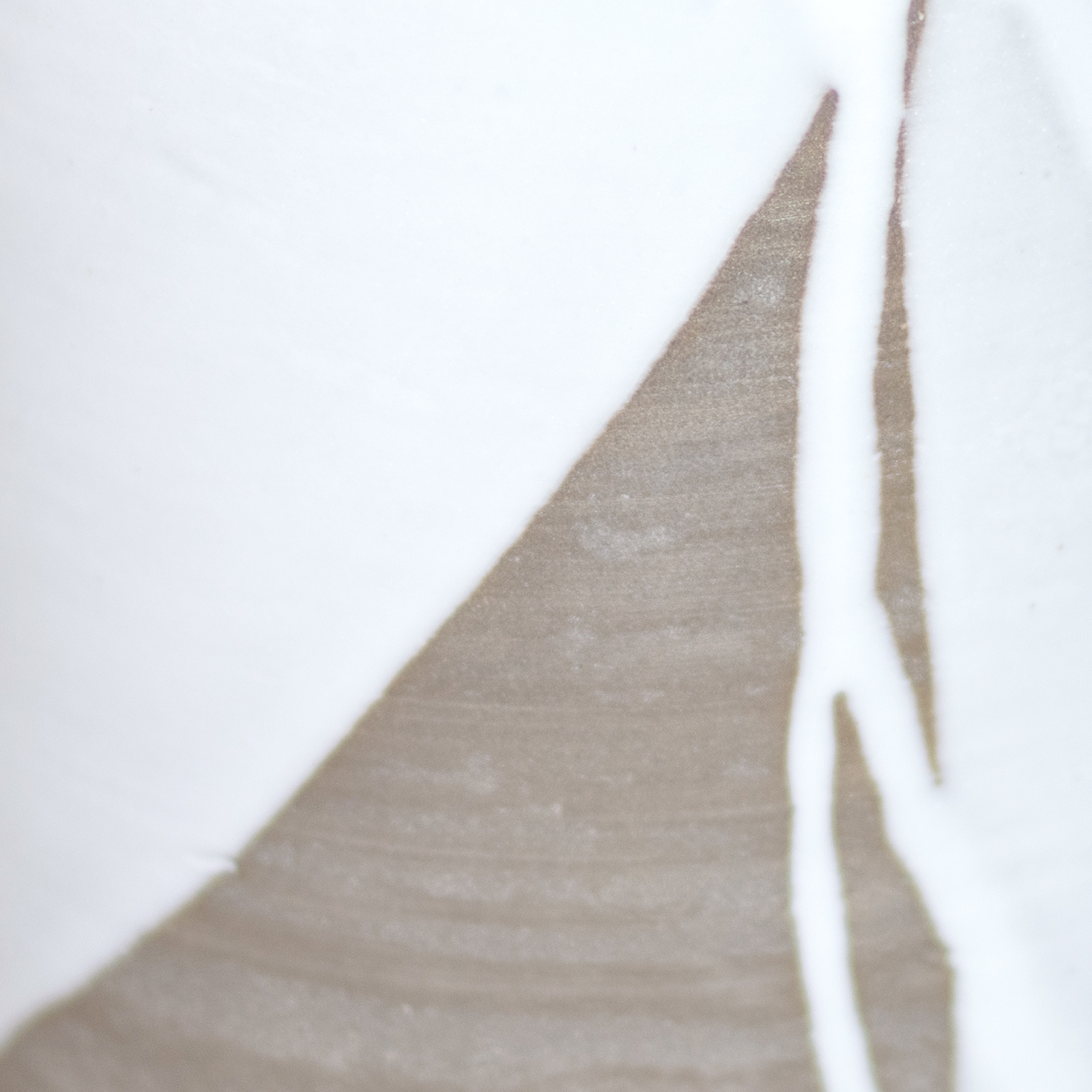 Wytoczony na kole garncarskim. Wykonany z gliny w kolorze szarego betonu. Pokryty w malarski sposób szkliwem błyszczącym w kolorze białym. Stemplowany logo autorki.